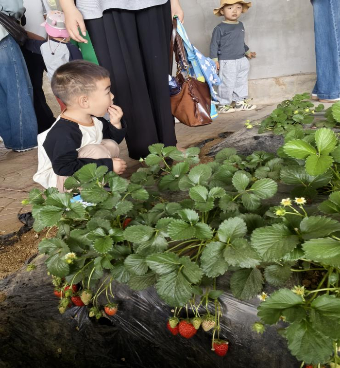 在老师和家长的陪伴下,孩子们走进利和庄园的水果大棚,开启了一场奇妙的“水果探秘之旅”。在工作人员的讲解下,他们认识了水果的生长环境,了解了从开花到结果的全过程,轻轻触摸叶片、凑近闻闻果香,直观感受着“植物生长的魔法”,用眼睛发现春天的色彩。