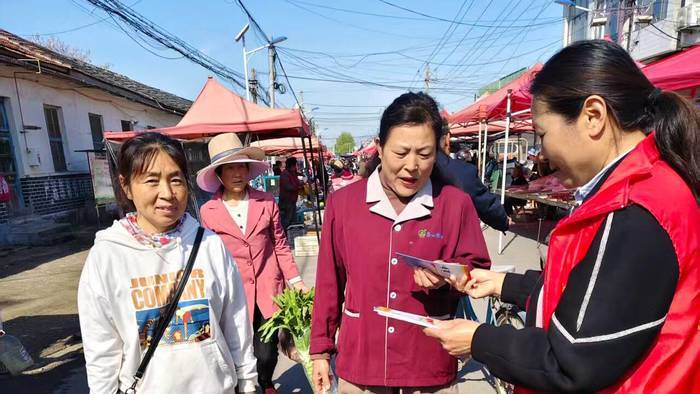 4月22日,莱芜区杨庄镇妇联联合司法所的工作人员在杨庄大集现场组织开展了一场主题为“普法进市集 巾帼在行动”的法治宣传教育活动,将法律知识送到百姓身边。