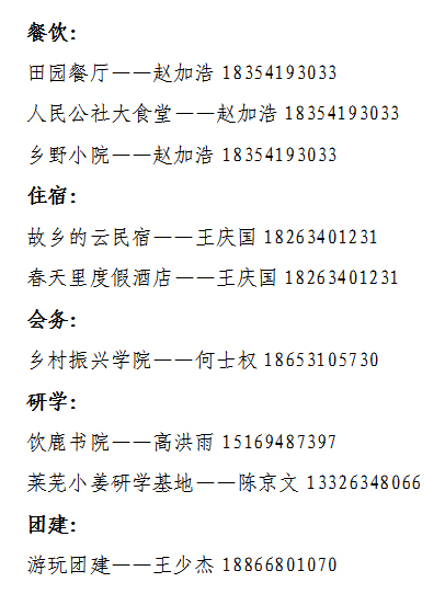 天上的街市乡村旅游度假区各服务点公众咨询联系方式:
