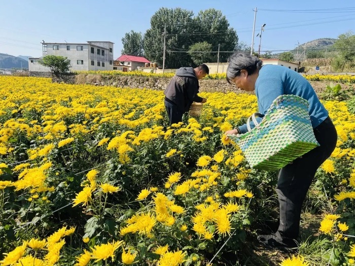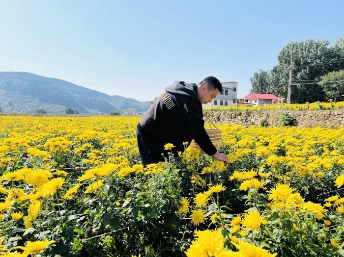 随着种植规模扩大,李耀聘请了更多村民参与菊花的日常管理和采摘。这不仅为村集体经济带来增收,也让不少村民实现了“家门口就业”。