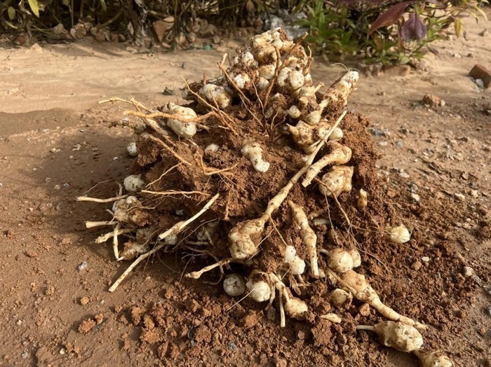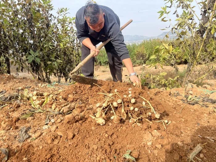 “洋姜,学名菊芋,其具有耐旱、耐贫瘠、管理相对简便的特性,且市场需求稳定、经济效益可观,一般大家会用来腌制咸菜、炒菜或做成菊粉来食用,有降血糖的保健功效。”东泉泸村党支部书记韩强介绍道。为了确保种植成功并实现效益最大化,东泉泸村“两委”成员主动作为,深入学习研究菊芋种植栽培技术,播种时,选择健康、无病害的块茎,按照合理的株行距进行栽种,保证每株洋姜都有充足的生长空间。同时,根据洋姜生长习性,进行灌溉、施用有机肥,确保养分和水分供应充足。