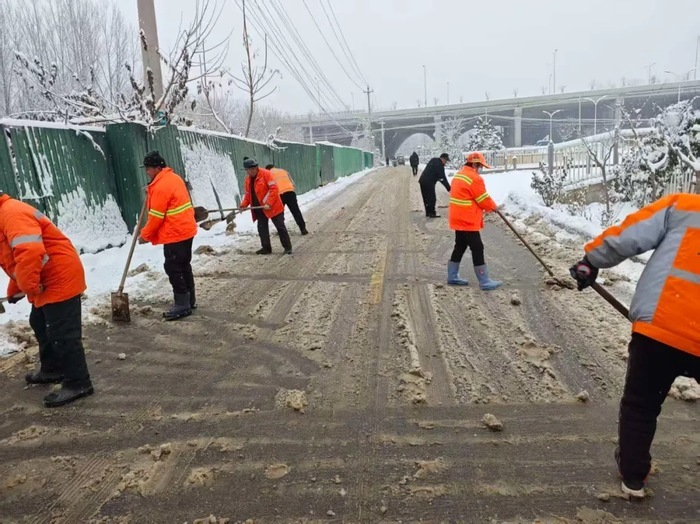 仲宫街道快速响应,降雪伊始,立即按照“随下随清,雪停路净”的标准展开行动。采取“机械+人工”协同作业模式,组织环卫工人,调配清雪车辆、撒布机等设备,连夜对辖区主次干道、桥梁、坡道等重点区域进行循环清雪与融雪防冰作业,此次清雪共出动大型滚雪车、撒布机、雪铲车共100余车次、装载机30车次,抛撒环保型融雪剂26吨,清理背街小巷135条,出动1500余人,最大限度减少积雪结冰对交通的影响。