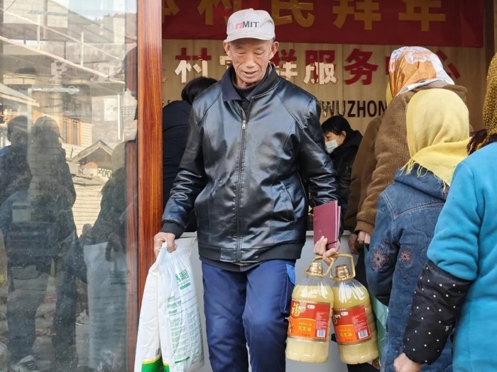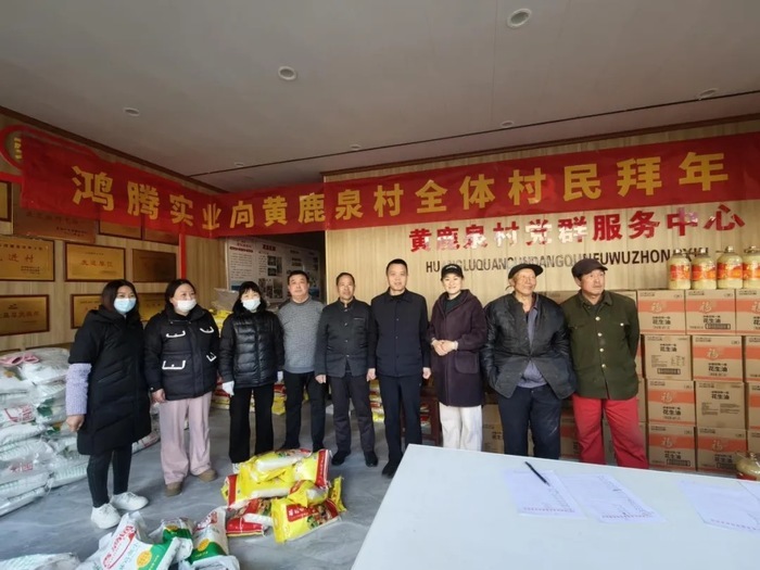 现场,黄鹿泉村村委会门口秩序井然。村民们怀着喜悦的心情,自觉排队等候领取爱心物资。鸿腾集团工作人员与村干部一起,有条不紊地清点、搬运物资,耐心引导村民有序领取,一句句“小心拿好”“新春快乐”的话语里满是真诚与关怀。