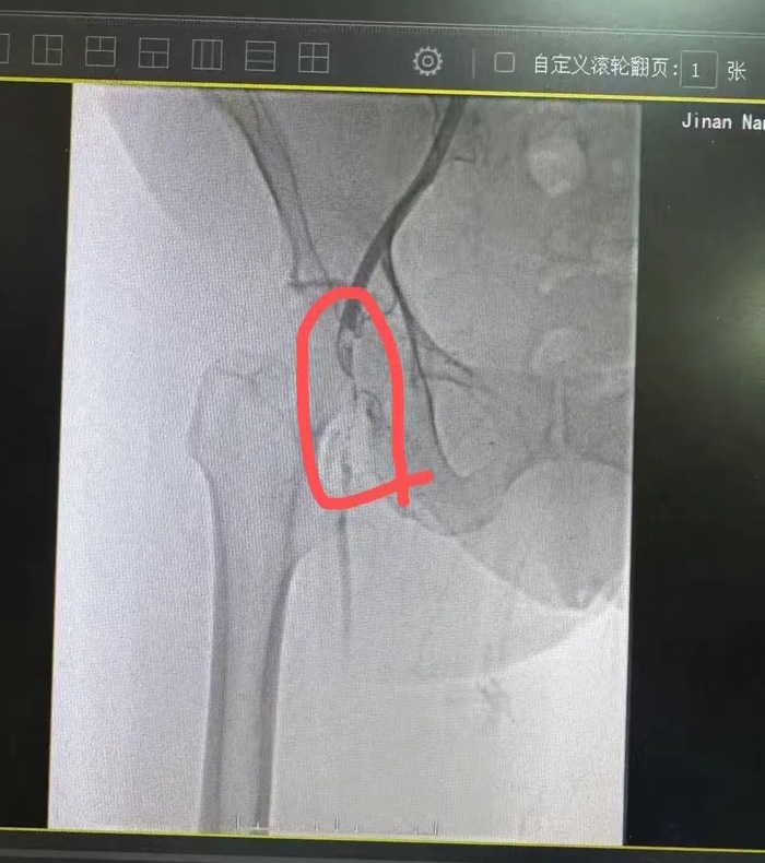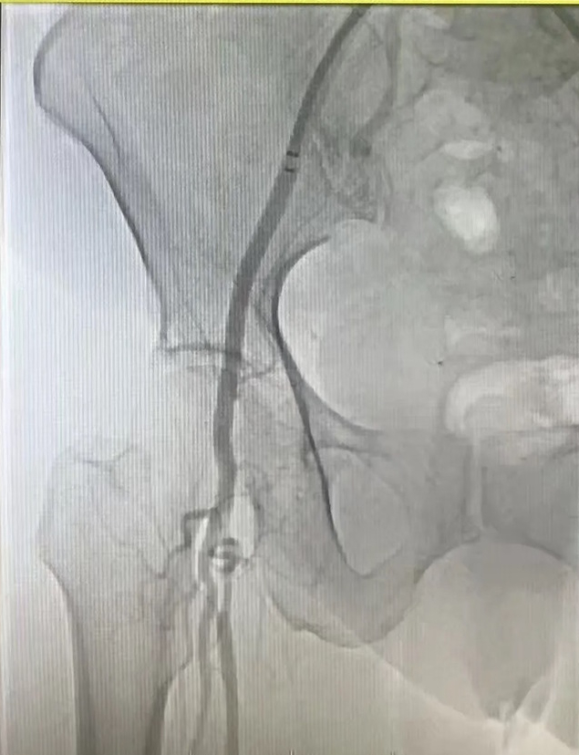 入院后,济南市南山人民医院血管外科团队迅速完善术前检查,为手术做好充分准备。术中,通过造影技术清晰显示患者股动脉栓塞部位及程度,证实了急性股动脉栓塞的诊断。医护团队采用经皮股浅动脉吸栓治疗方案,精准清除血栓,恢复下肢血流。