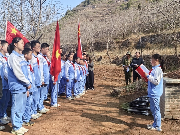 少先队员、共青团员、学校教师代表、退役军人代表、思想政治指导员、退役军人服务站工作人员及社工志愿者等80余人,共同来到秦口峪村段福才烈士墓地,追忆革命先烈,以奋进之志告慰英魂。
