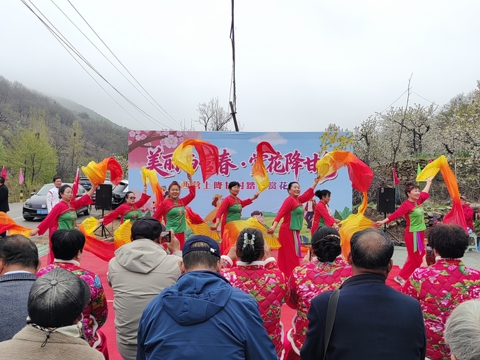 赏景之余,丰富的乡野体验与特色美食更是让大家收获满满。在山间挖野菜,如荠菜、苦菜、蒲公英等时令野菜,体会乡野采摘乐趣;在云涧取泉,游客可以亲身参与汲水、灌泉过程,近距离感受上降甘村天然山泉的清澈甘甜;更有售卖香椿芽、小米、土鸡蛋、泉水面条、手工豆腐等农产品的山货大集,以供游客驻足选购。“这是我们村首次举办赏花节,借着活动,让更多人认识上降甘、了解梯子山,也能让乡亲们多一份收入。”张东才说,“欢迎大家4月来赏花,5月来摘樱桃,上降甘的春日美景、地道美食绝不会让大家失望。”