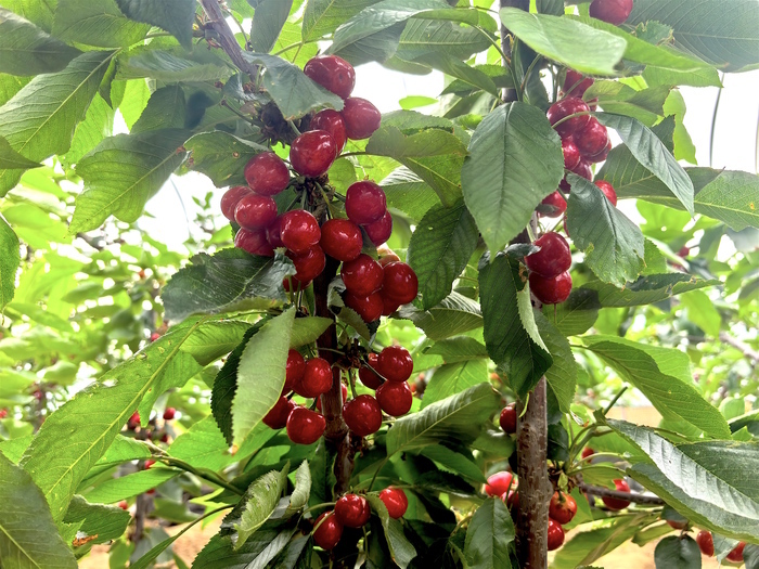谈及樱桃品质好的秘诀,宋文营打开了话匣子:“樱桃树施用有机肥,用山泉水灌溉,绿色无公害。”他特别提到,今年使用的肥料是他个人熬制的,“买了一吨大豆,熬制发酵成肥料,再深埋树底。所以咱们的大棚樱桃甜脆、肉厚、汁多”。大棚樱桃的管理需要格外细心。宋文营介绍,不仅要精准控制棚内温度,还要严格控制水分,什么时候浇水,水量多少都得把握好。