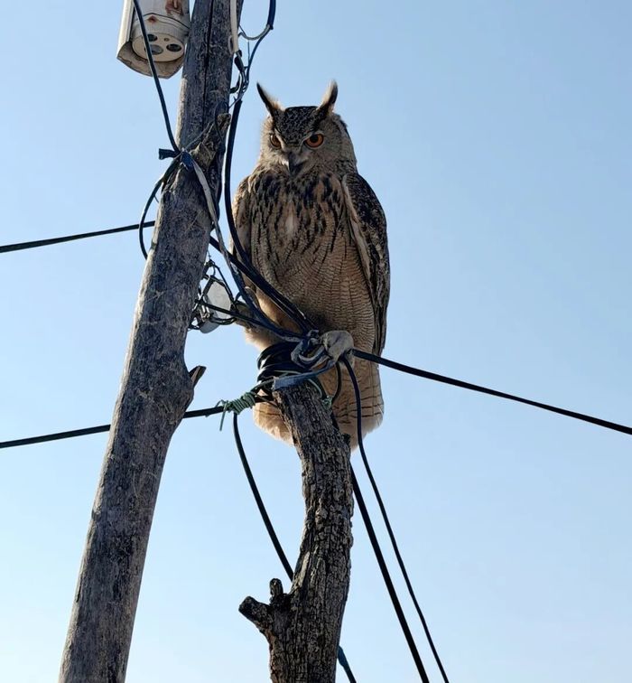 消防救援人员携带专业器械,凭借丰富经验小心安抚、精准接近;自然资源局工作人员现场鉴定,确认其为国家二级保护动物雕鸮。经细致检查,雕鸮体表无外伤,系因体力不支暂时“罢工”。在工作人员为其补充了清洁饮水和食物后,这只健硕的“山林卫士”恢复了活力,被顺利放归自然。