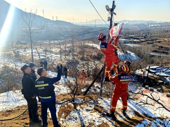 1月21日下午,济南市公安局钢城分局汶源派出所接到群众报警:上历山有一只大型鸟类疑似受伤,无法飞行。民警、辅警火速抵达,发现这只“大个子”猛禽疑似雕鸮。面对性情凶猛且可能受伤的国家重点保护动物,民警没有贸然行动,而是第一时间启动联动机制,同步呼叫消防救援大队与自然资源局专业力量支援。