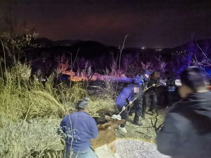 大队闻警即动、快速响应,第一时间调集警力,携带无人机等专业装备火速赶赴现场。抵达后,队员通过和养殖户的沟通,结合地形地貌研判牛走失方向,同步操作无人机升空开展立体搜寻,依托热成像技术对周边山坡、沟壑、林地等重点区域进行全方位、无死角排查。