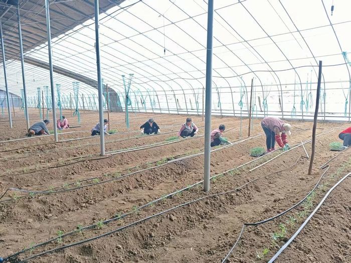 走进牛马庄村,一座座整齐排列的温室大棚映入眼帘。棚内,村民们井然有序地开展着“青甜2号”西红柿幼苗的种植工作。一株株嫩绿的幼苗被小心翼翼地栽入土壤。“以前农闲没事干,现在天天有活干,日子越过越有奔头。”一位村民感慨道。据了解,村里共利用九个大棚种植西红柿25000株,预计亩产量可达8000斤左右。待果实成熟后,这批西红柿将主要发往寿光市场,并同步供应周边采摘,既丰富了市场供应,也为乡村采摘游增添了新亮点。