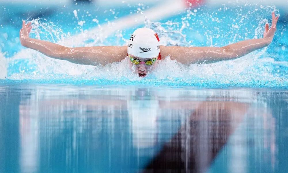 7月28日,中国选手张雨霏在巴黎奥运会游泳女子100米蝶泳比赛中 图源:新华社