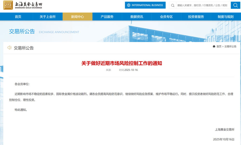 上海黄金交易所今日发布通知称,近期影响市场不稳定的因素较多,国际贵金属价格波动剧烈。
