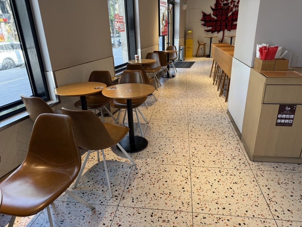 一家咖啡店内有可供用餐的桌椅,但在三大平台上均未标出“堂食”标识。澎湃新闻记者 陈逸欣 图