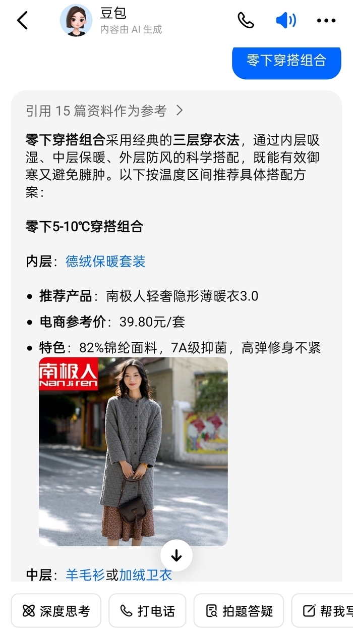问豆包“冬装”秒出清单,秋裤链接直达旗舰店