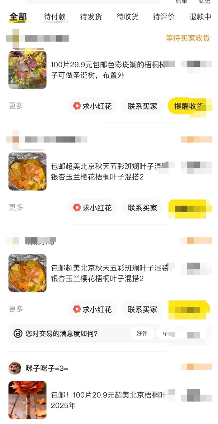 落叶在线交易活跃:银杏枫叶成热门商品,有店铺月销超500单