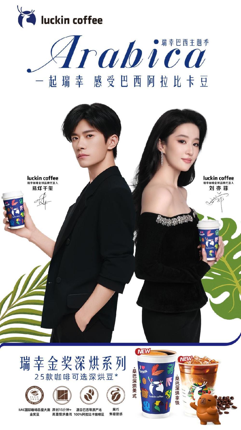为了给新品造势,瑞幸这次玩得更大胆:请来刘亦菲和易烊千玺两位全球代言人合体出演,一起上演了一段关于“阿拉比卡”和“卡皮巴拉”的反差怪谈。