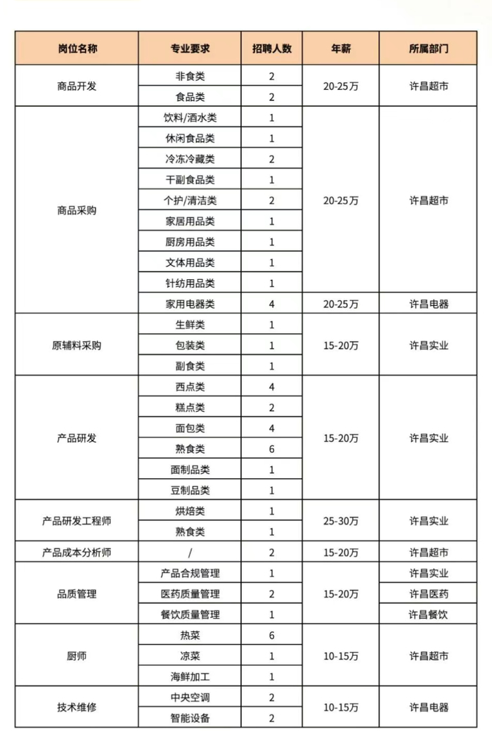 公告显示,此次招聘岗位聚焦于零售业核心业务环节的技术与研发。具体涵盖了烘焙、熟食方向的产品研发工程师、商品开发、生鲜、家电、家居方向的商品采购、品质管理、中央空调技术维修及厨师等岗位。