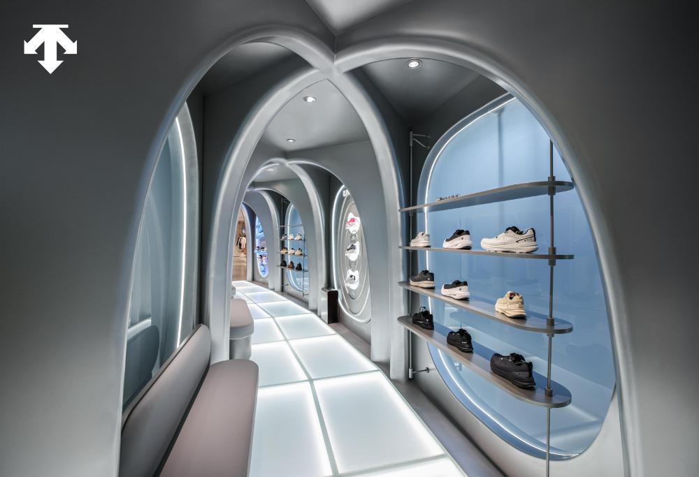 依托滑雪、铁人三项、高尔夫及多场景训练所构成的完整专业矩阵,旗舰店将专业装备从单一产品展示,延展为围绕真实运动需求展开的系统化表达,使消费者能够在具体场景中理解不同产品之间的关系,以及装备如何服务于不同类型的运动体验。作为品牌全球旗舰店,“未来之城”不仅承担产品展示与零售功能,也成为专业装备、运动体验与使用场景被集中呈现的重要载体。通过多维度的连接递进的空间设计,迪桑特全球旗舰店从单向输出的零售场景转向可被反复进入与理解的体验化场域,进而变成品牌与行动家之间持续发生交流的纽带。