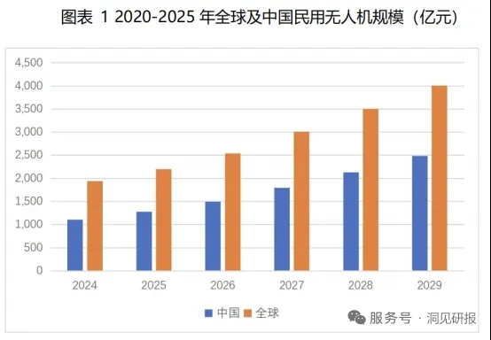 市场规模的持续扩张印证产业活力。2025年中国民用无人机市场规模预计达1277亿元,2029年将增至2489亿美元,全球市场规模同期将从2202亿元突破4000亿元,5年复合增长率约16%。截至2025年6月末,全国低空经济相关企业超8万家,深圳、广州、北京等核心城市聚集效应显著,其中深圳的大疆创新占据全球消费级无人机70%的市场份额,构建了完整的研发、制造与应用服务体系。
