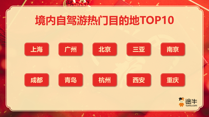 数据显示,春节旅游市场途牛用户境内游热门目的地中,上海、北京、广州、三亚、南京、成都、重庆、西安、厦门、哈尔滨成为游客更为热门的选择,出游热度位居“春节境内游热门目的地榜单”前列。