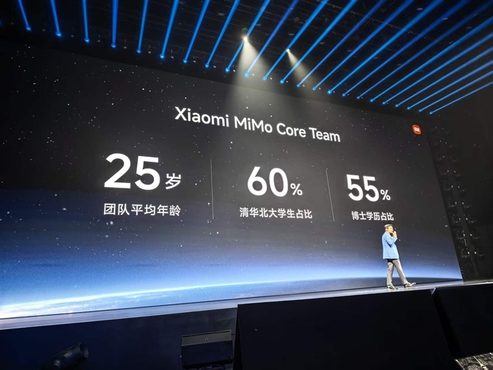 雷军介绍,MiMo模型由小米核心技术团队Core Team研发打造,团队成员平均年龄25岁,超六成成员从清华、北大毕业。