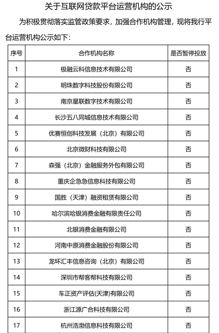 近日,威海蓝海银行官网更新了互联网贷款平台运营机构信息。根据2026年3月5日披露的名单,蓝海银行合作的互联网贷款平台运营机构还有28家,有40家机构被该行暂停投放。