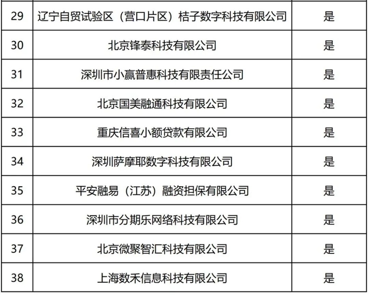 从名单上看,辽宁自贸试验区(营口片区)桔子数字科技有限公司、北京锋泰科技有限公司、深圳市小赢普惠科技有限责任公司等40家互联网贷款平台运营机构被蓝海银行暂停投放。