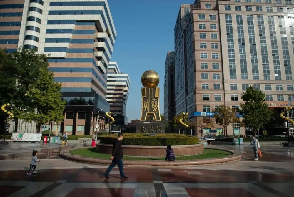 在北京金融街核心区拍摄的“古币·金融”雕塑。 新华社发