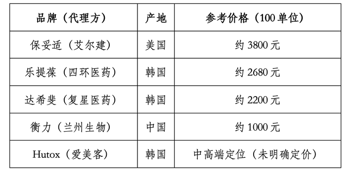 2021年,爱美客曾以超募资金8.86亿元溢价74倍收购Huons公司25.42%股权,一举获得Hutox肉毒素产品在中国的独家代理权。截至2026年初,国内已有7款合规A型肉毒毒素同台竞争,价格战愈演愈烈,具体参考价格如下(数据来自第三方医美行业研究报告):