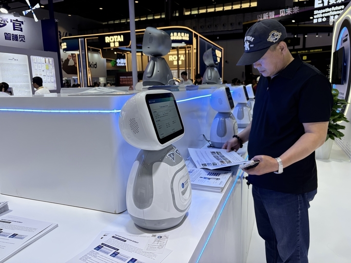 “这代机器人的手臂不仅能灵活活动,触摸的反馈也更真实了。”现场的工作人员向记者演示着最新款机器人的交互细节。他表示,除了能测血压、血糖这些硬性健康指标,内置的大模型经过适老化调试后,现在能逐渐理解老人的心理活动,给出更有温度的陪伴反馈。甚至面对老人不太标准的普通话,它也能准确响应。同时,这款产品还针对英语、法语及东南亚多语种进行了优化,借助消博会这个高水平的开放平台,剑指庞大的海外养老市场。