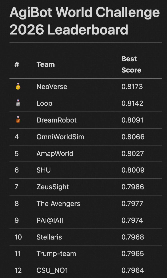 近日,在AgibotWorldChallenge与WorldArena两大国际权威评测中,中国Abot-world系列世界模型实现了双双登顶,谷歌、英伟达等海外顶尖科技公司均参加了本次评测。这标志着中国在具身智能核心基础能力——世界模型构建方面已经处于全球领先水平。