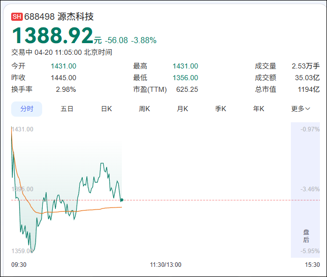 4月20日上午,贵州茅台股价盘中反超源杰科技,重新成为A股市场股价“一哥”。