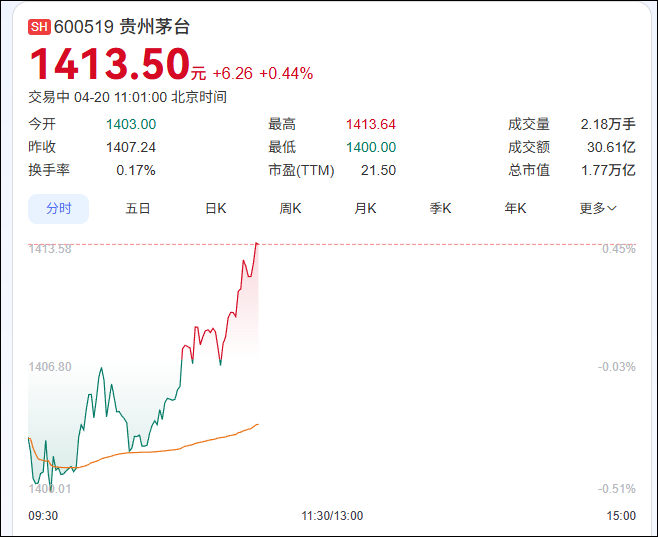 贵州茅台股价盘中反超源杰科技,重新成为A股市场股价“一哥”