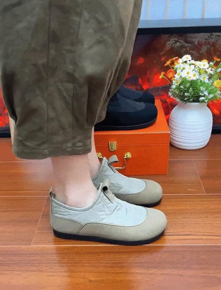 这款鞋子采用老北京款式一脚蹬设计,不需要系鞋带,只需轻轻一伸脚,鞋子便稳稳地穿在脚上。