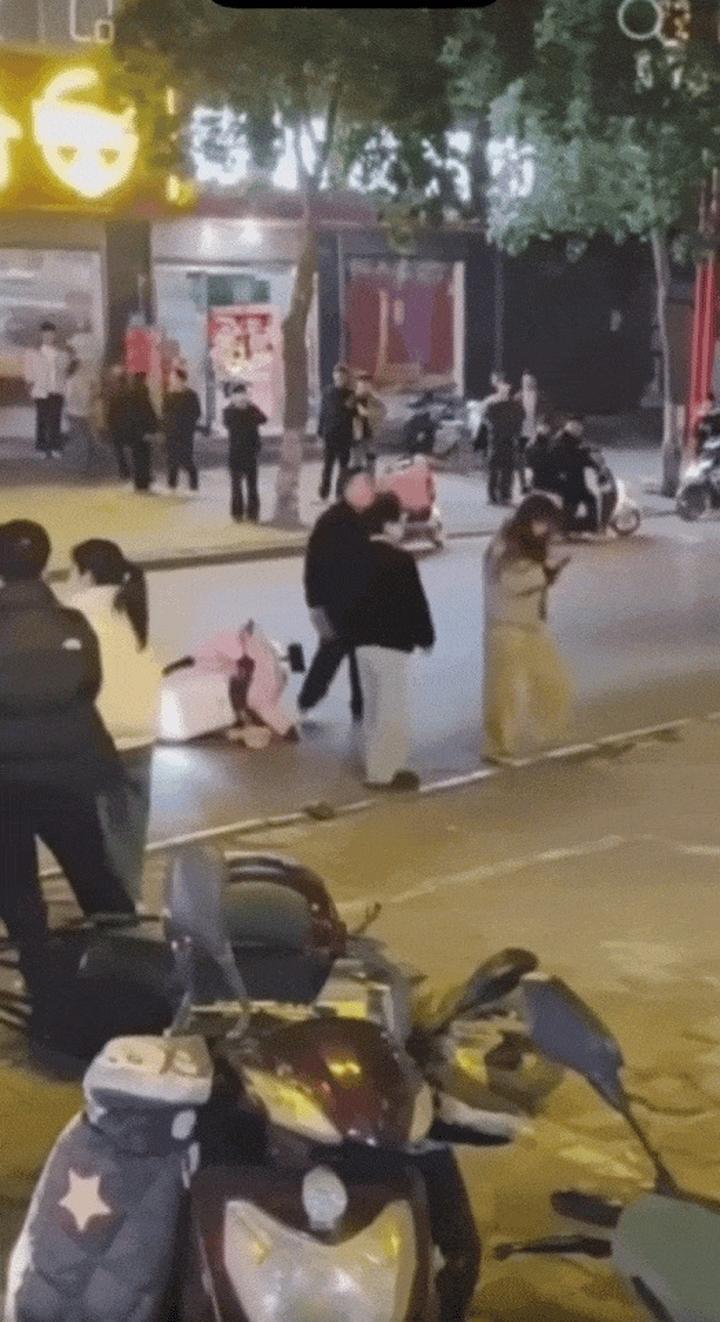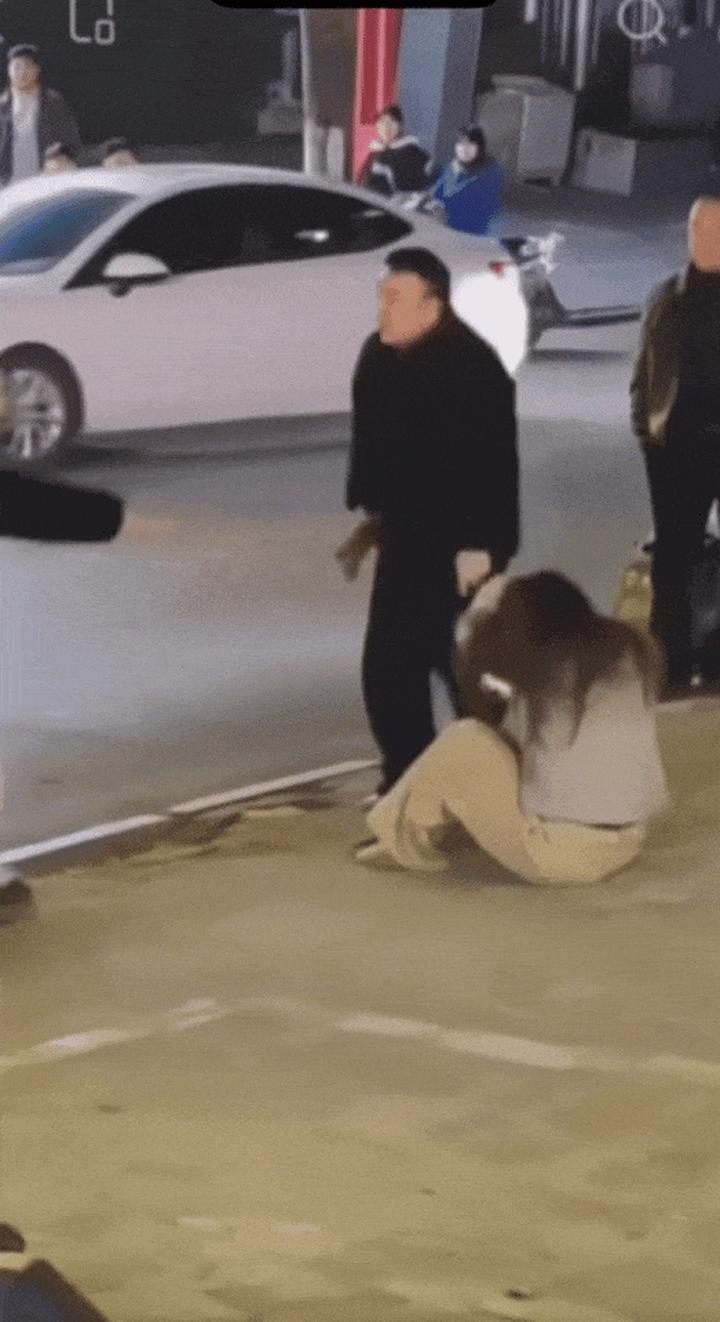 还有一位好心上前劝架的路人,也被他一拳直接打倒在地。