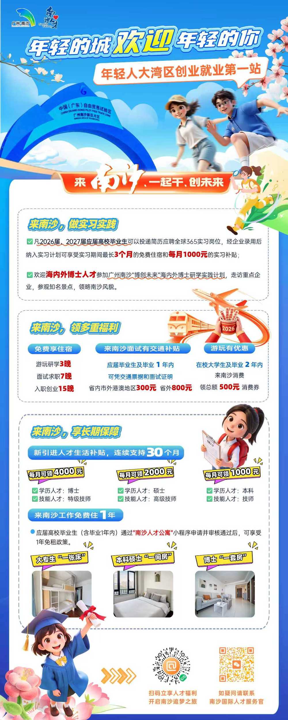 把“以年轻的城务年轻的人”视为城市战略选择的南沙,主打个听劝,这两天迅速组织定制出青春版城市漫游路线,诚邀广州各高校150万学子趁春日踏青出游好时节,来一场说走就走的甜蜜之旅。