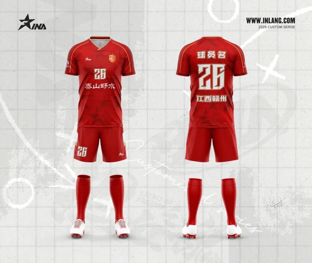 主场球衣设计以赣州 “红色故都” 革命底蕴为核心,炽热红基底搭配耀金点缀,衣身布满层叠星星暗纹,如同燎原星火,既致敬红色传承,又象征球队群星闪耀、团结一心。金色线条勾勒轮廓与星芒边缘,层次鲜明、荣耀感十足,完美融合红色基因与冠军精神,寓意球队以老区坚韧风骨,在赛场势如星火、冲击桂冠。