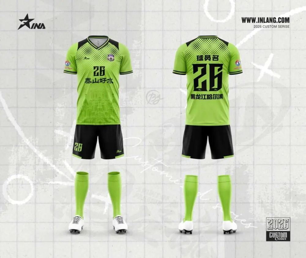 主场球衣以 “青城” 城市底色为灵感,选用清新草绿为主色,衣身织入蒙古族等少数民族传统纹样暗纹,把民族底蕴与体育精神深度融合,让球衣成为流动的民族文化名片,彰显草原儿女的热情、团结与奋进力量。