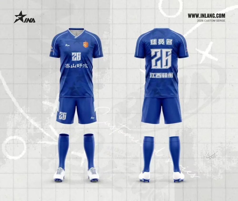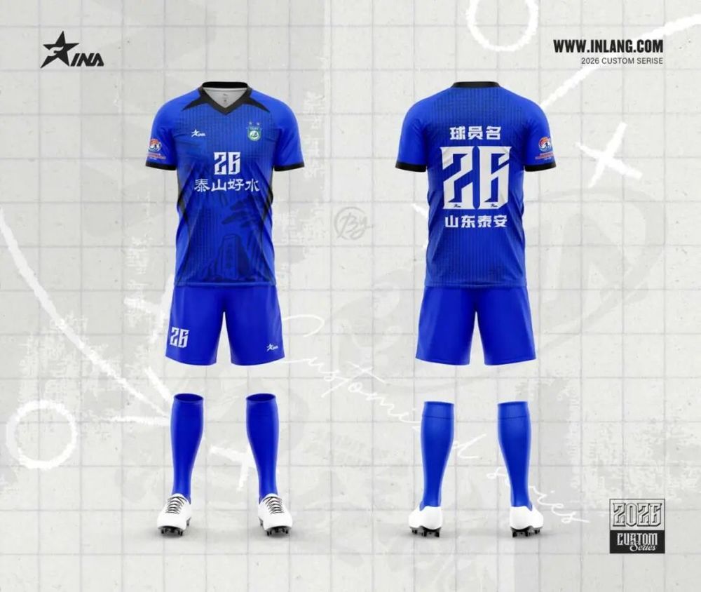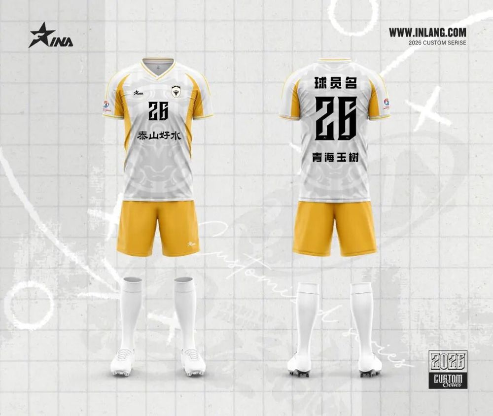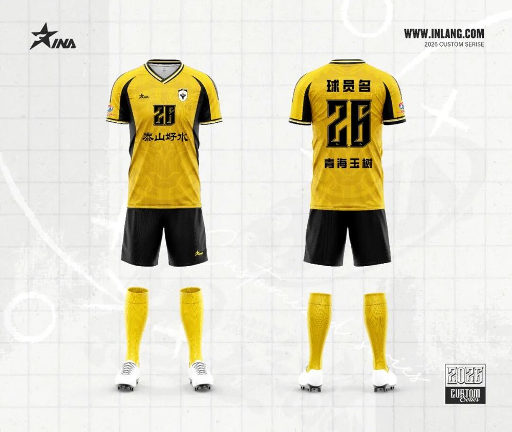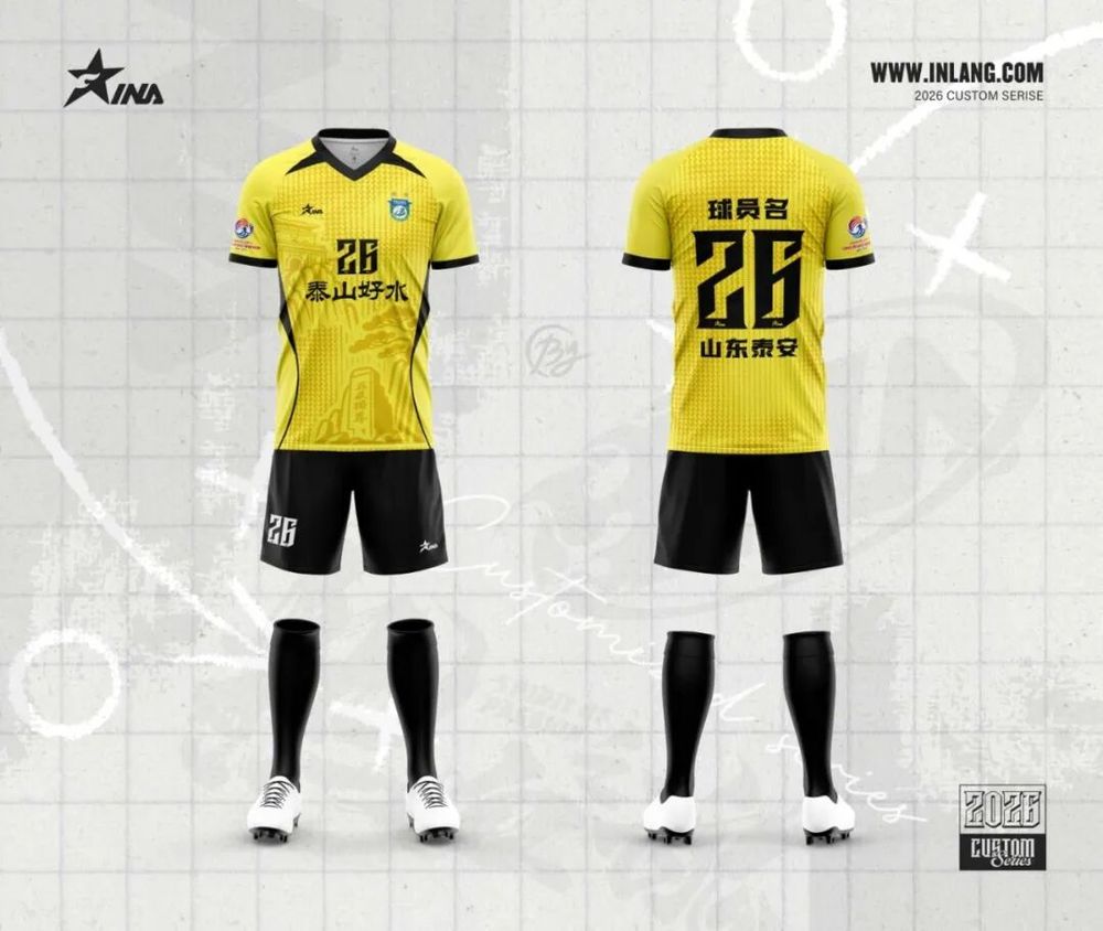 本款泰安主场战袍以明黄为主色、墨黑为点缀,深度萃取泰山文化精髓,凝练“五岳独尊、国泰民安、稳如泰山、勇攀高峰”的精神内核。衣身暗纹提取泰山山势轮廓与“五岳独尊”石刻纹样,呈现泰山拔地通天的雄姿,象征球队步步攀登、永不言弃的竞技意志;纹理疏密呼应山势起伏,兼具视觉层次与运动透气感。设计以“山为魂、黄为骨、勇为神”,让每一位身着战袍的球员,都成为泰山精神的践行者——立足泰安、胸怀五岳,以山之稳健、日之昂扬,驰骋绿茵、勇争巅峰。