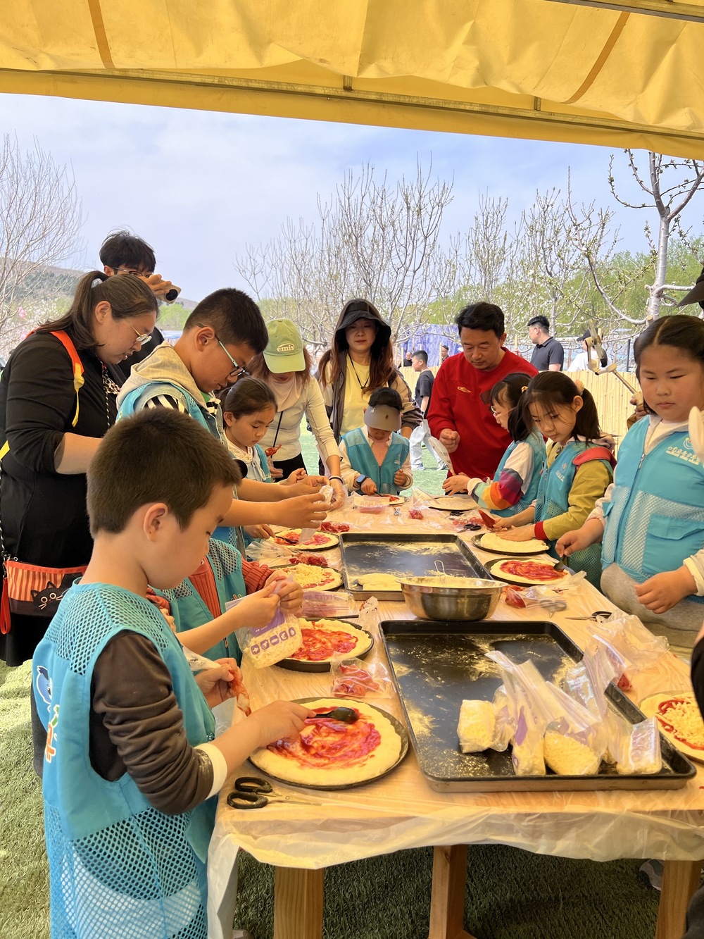 •食育体验古法柴窑特色窑烤:传统土窑恒温慢烤,亲子亲手制作水果披萨,外皮焦香、内里拉丝,烟火气满满,体验从动手到出炉的完整美食乐趣。这是孩子亲手做的午餐,味道不一样。