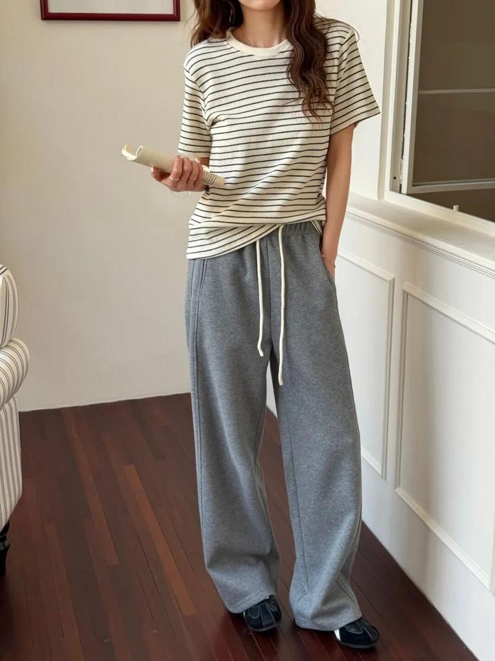 这条早八漫游裤,用的是精准的直筒微宽松剪裁。