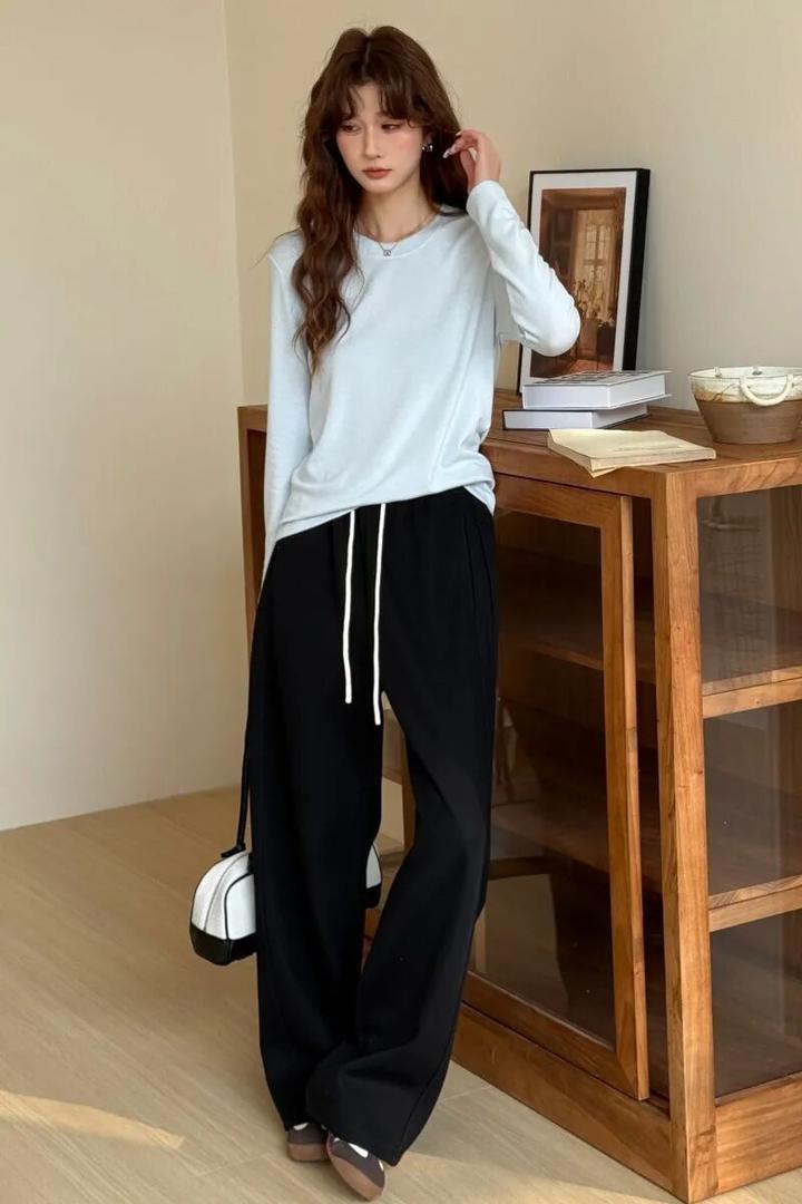 也不像阔腿裤那样过分宽松,显得拖沓没精神。