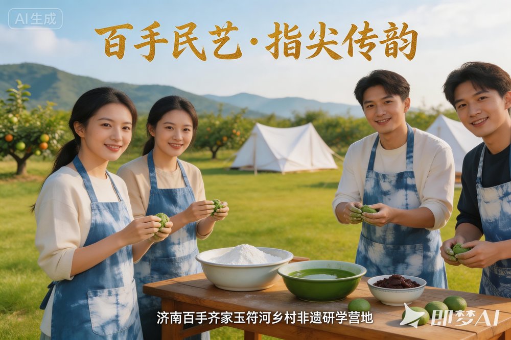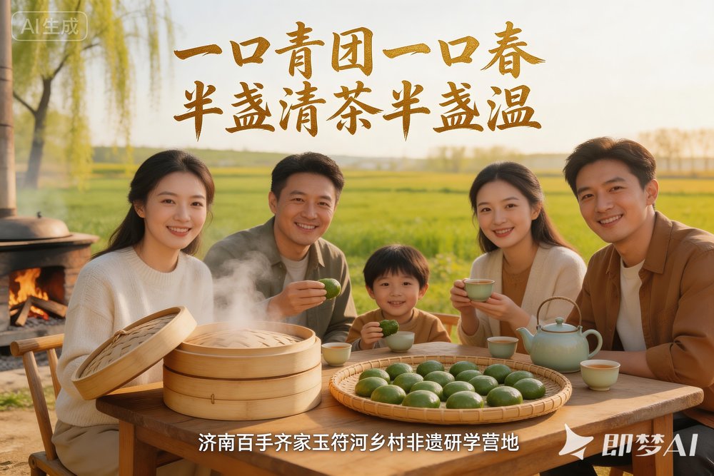 清明时节,玉符河畔草木繁茂。百手民艺玉符河乡村非遗研学营地将举办"青艾揉春·玉符传情"亲子青团手作活动,通过沉浸式非遗体验,让市民在揉面塑形间触摸寒食节的千年温度,用玉符泉水调和出最具泉城特色的清明滋味。