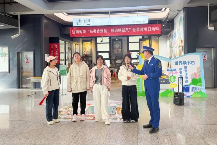 书香伴地铁,阅读润泉城。4月23日,世界读书日如期而至,济南地铁以文化赋能出行,联动多方资源,分别在大学城站、山东大学站、山东职业学院站开展主题读书活动,把阅读搬进地铁空间,让出行与书香同行,为市民乘客带来一场有温度、有创意、有烟火气的文化体验。
