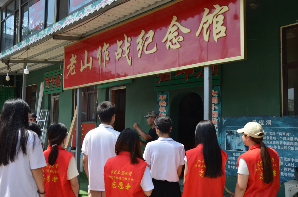 基地创始人、参战老兵王恩亮带领实践团参观了老山作战纪念馆、猫耳洞展区、神炮连等展区。老山作战纪念馆内,文物、图文资料和场景复原,重现了革命先辈在艰苦条件下英勇奋战的历程;猫耳洞展区的复原场景,让成员感受战士们在狭小潮湿环境中坚守阵地的顽强意志,王恩亮讲述的 1986 年雨季战士们的经历,令队员眼眶湿润;神炮连展区的影像资料和装备,展现了革命队伍的战斗风采与爱国情怀。