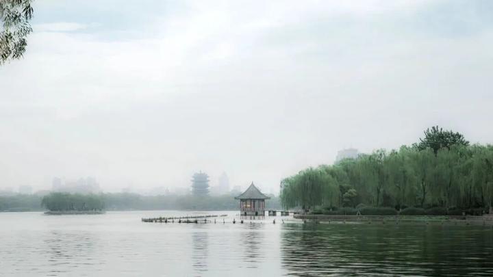 细雨蒙蒙的大明湖,像是一幅浓墨山水画,湖面烟雾缭绕,雨丝带着凉意扑来,仿佛在诉说大明湖里的浪漫故事……