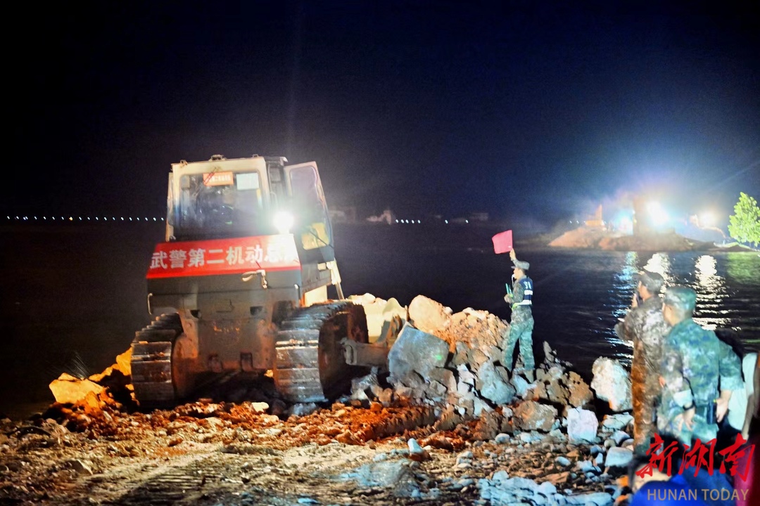 7月7日零时,决口已封堵34米。湖南日报全媒体记者郭立亮摄