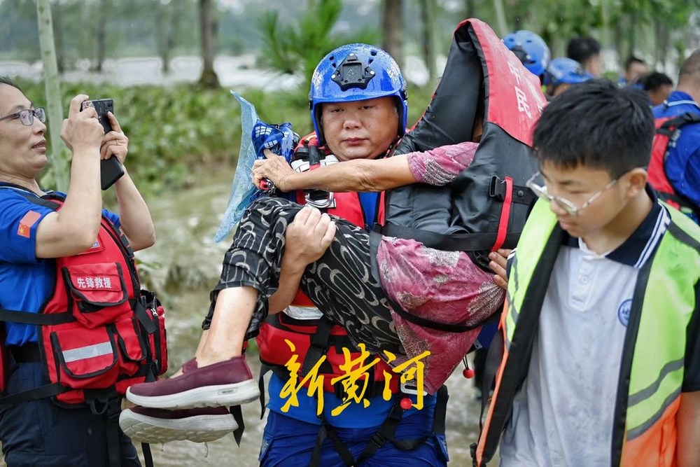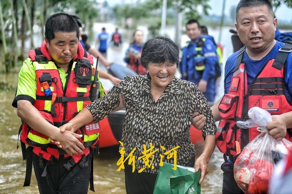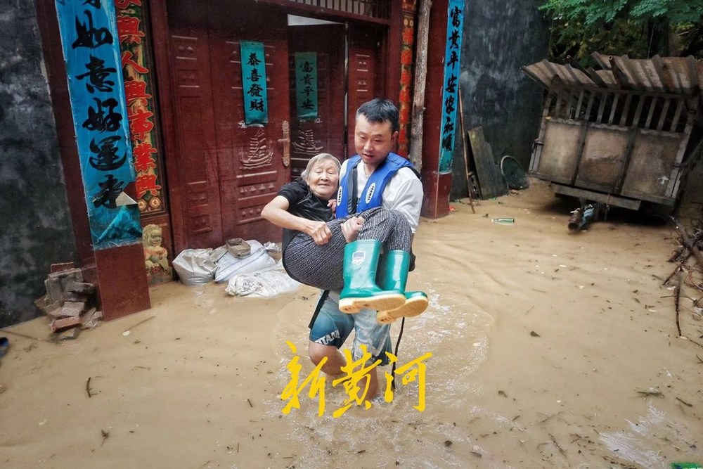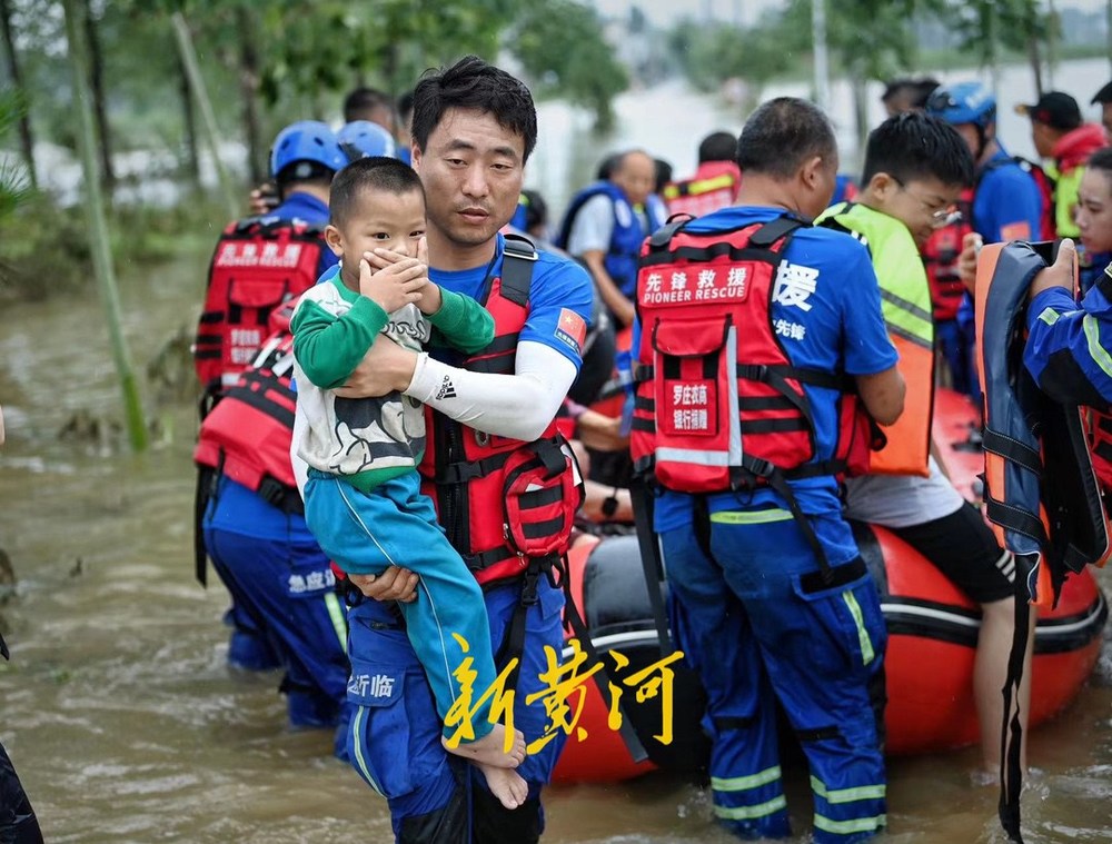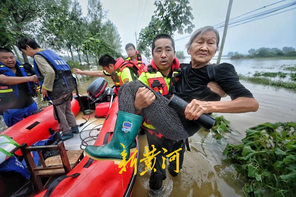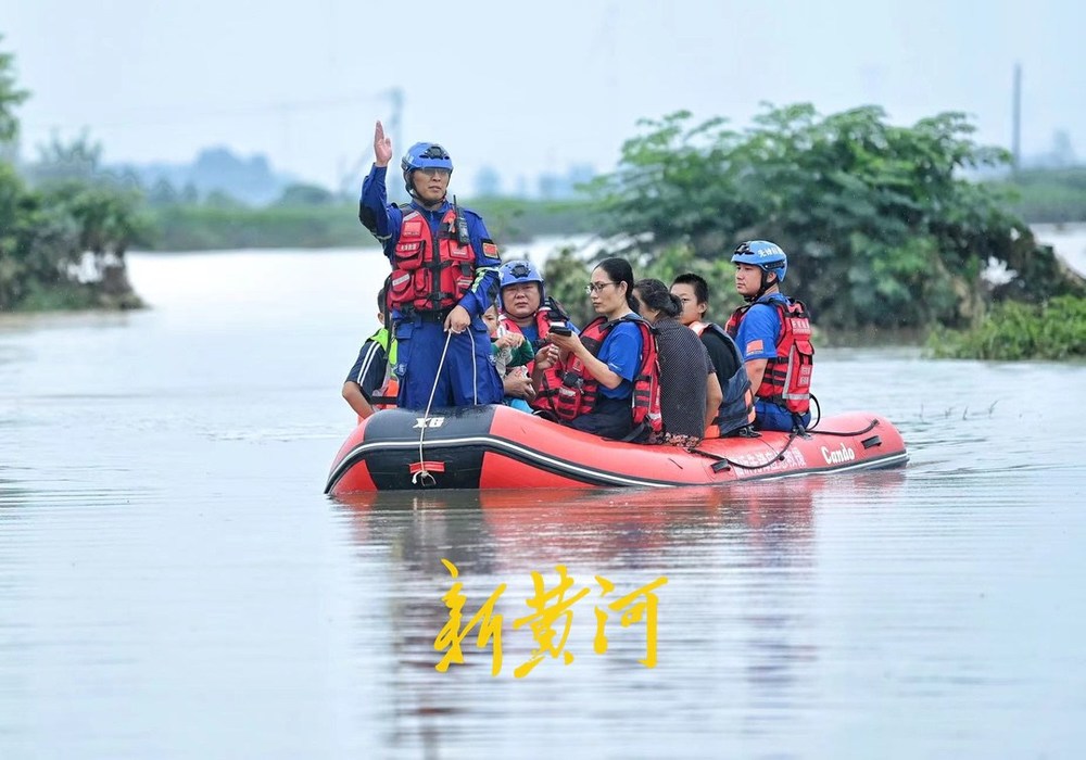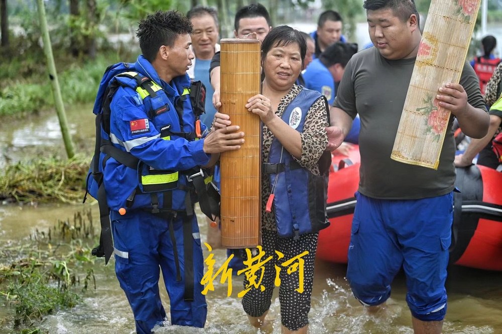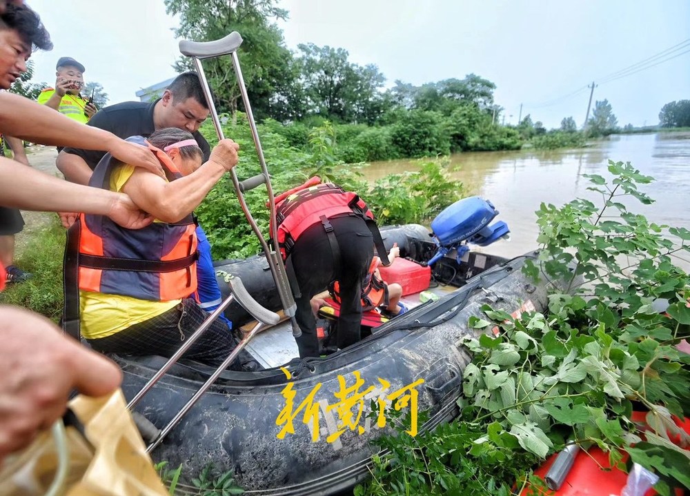 7月19日上午,新黄河记者跟随济南益民救援队赶到唐河县杨店村,救援转运被困村民。