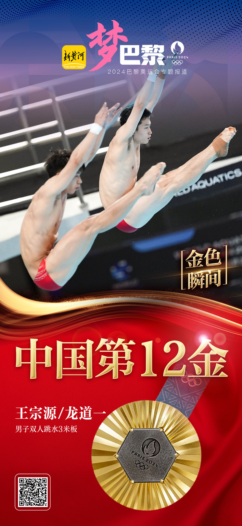 在刚刚结束的巴黎奥运会男子双人跳水3米板决赛中,中国组合王宗源/龙道一夺得金牌,这是中国代表团在本届赛事中的第12枚金牌。